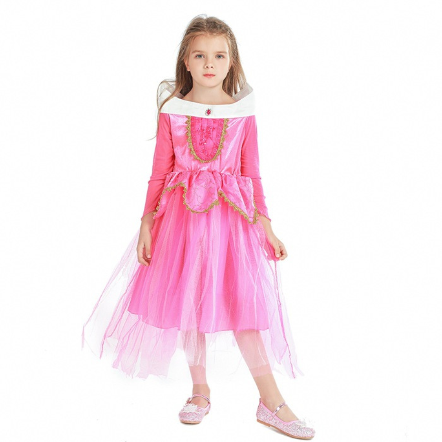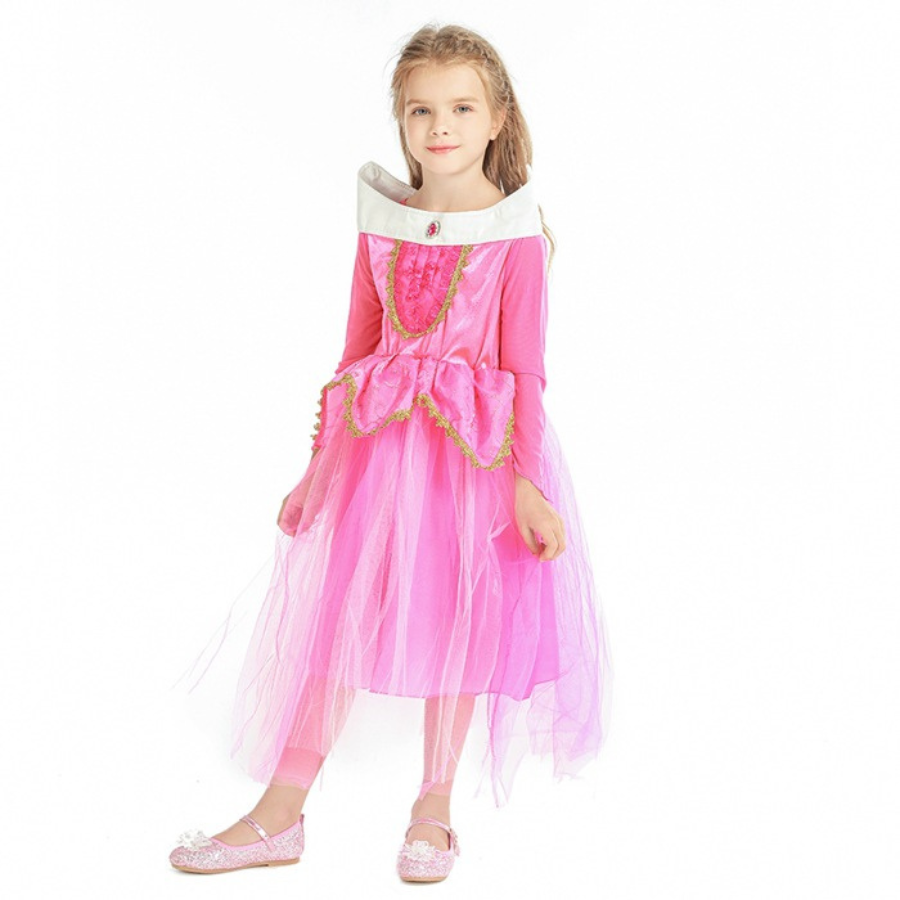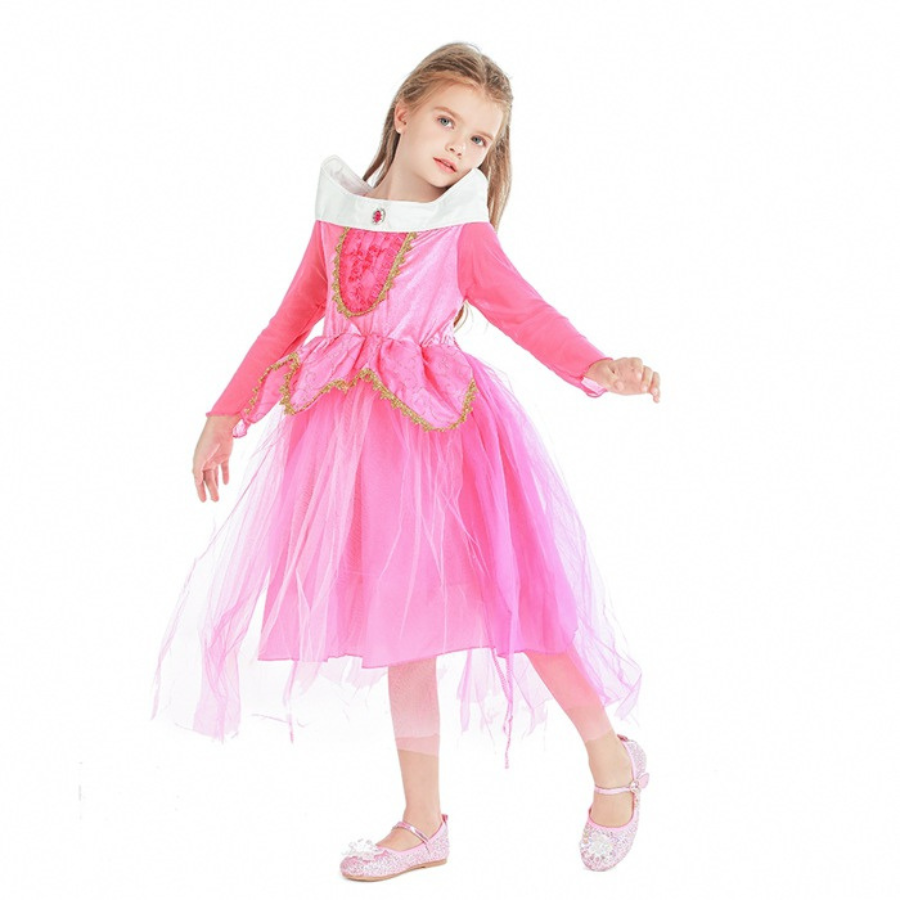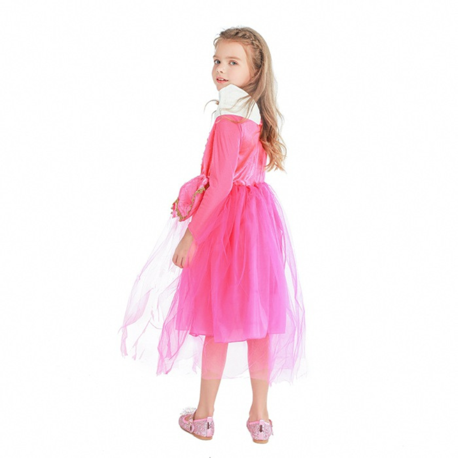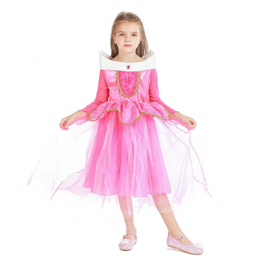 Bộ Đầm Công Chúa Màu Hồng Viền Vàng + Phụ Kiện
