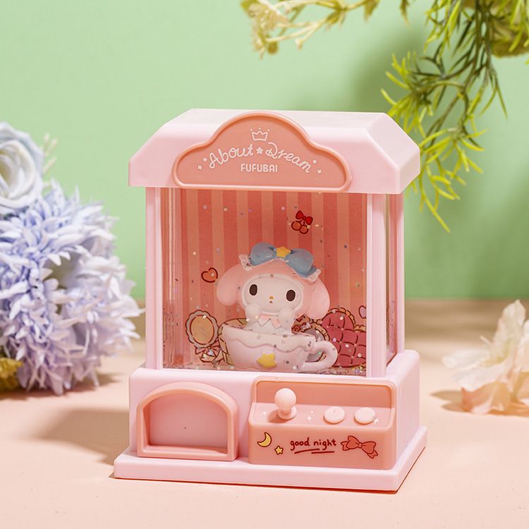 Các nhân vật hoạt hình nhỏ xinh bên trong máy, như chú thỏ, mèo và cừu, mang đến sự dễ thương, vui nhộn. Chúng đều có biểu cảm sống động và dễ thương, khiến người xem không thể không mỉm cười. Ngoài ra, thiết kế mô phỏng chi tiết của máy gắp thú với các nút bấm và cần gạt tạo thêm phần chân thật và sinh động cho mô hình.