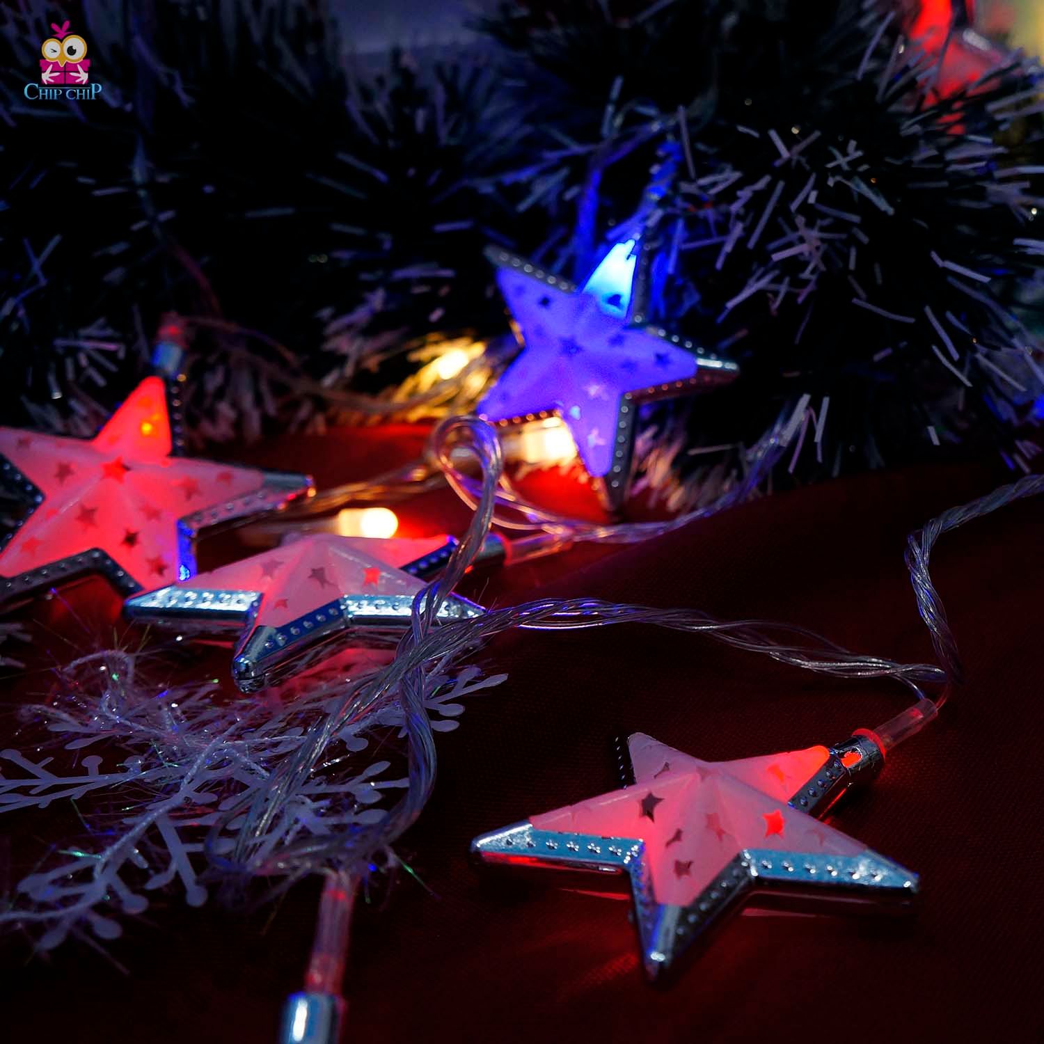 Dây đèn trang trí Noel ngôi sao viền bạc