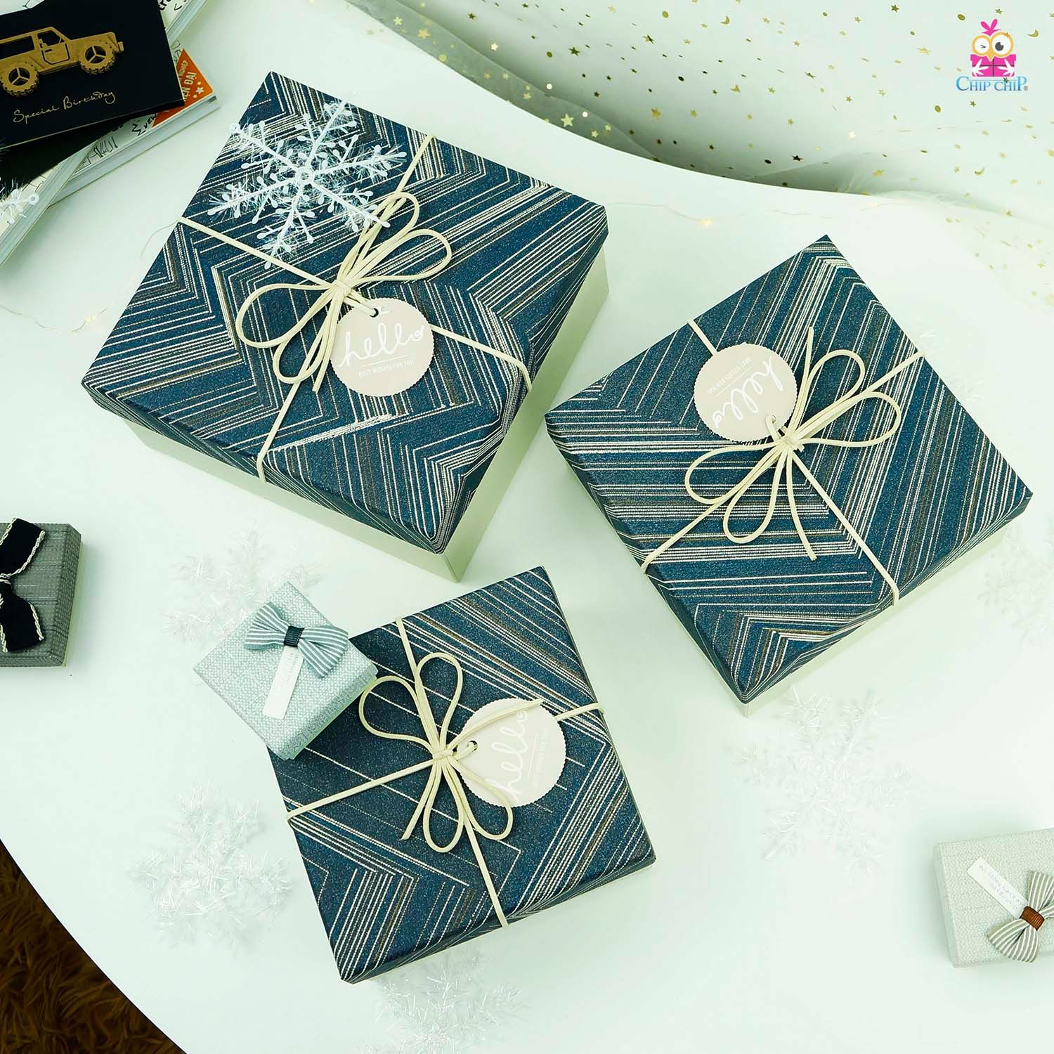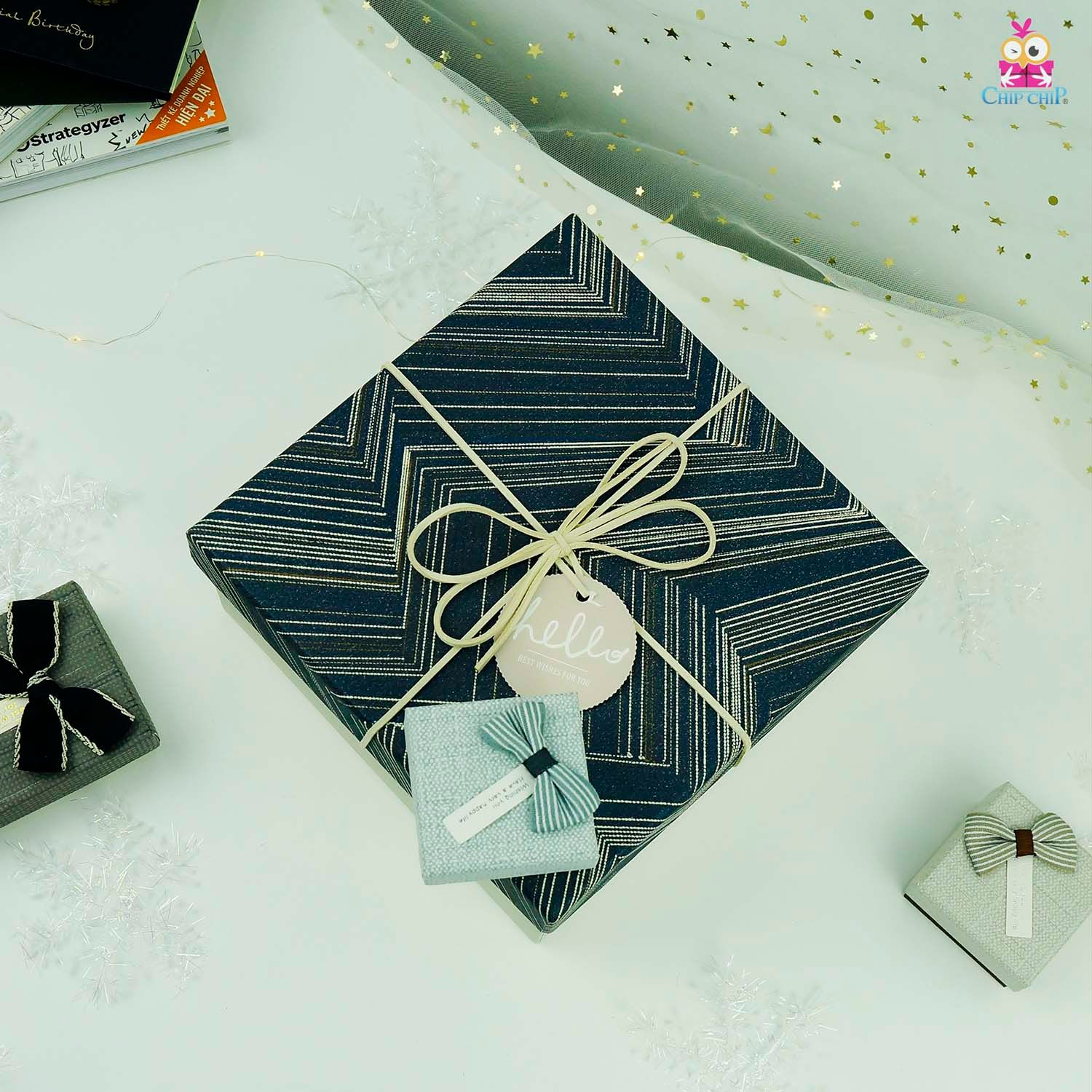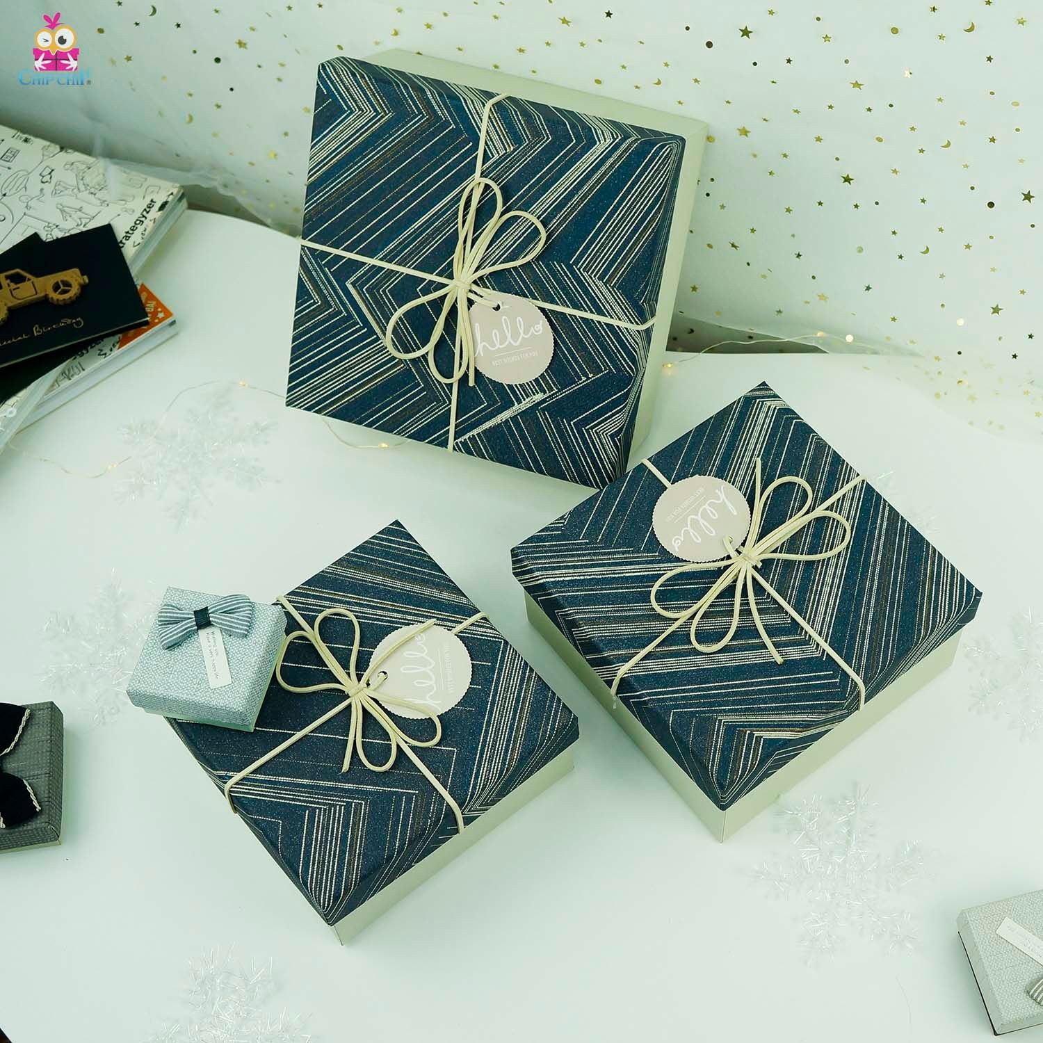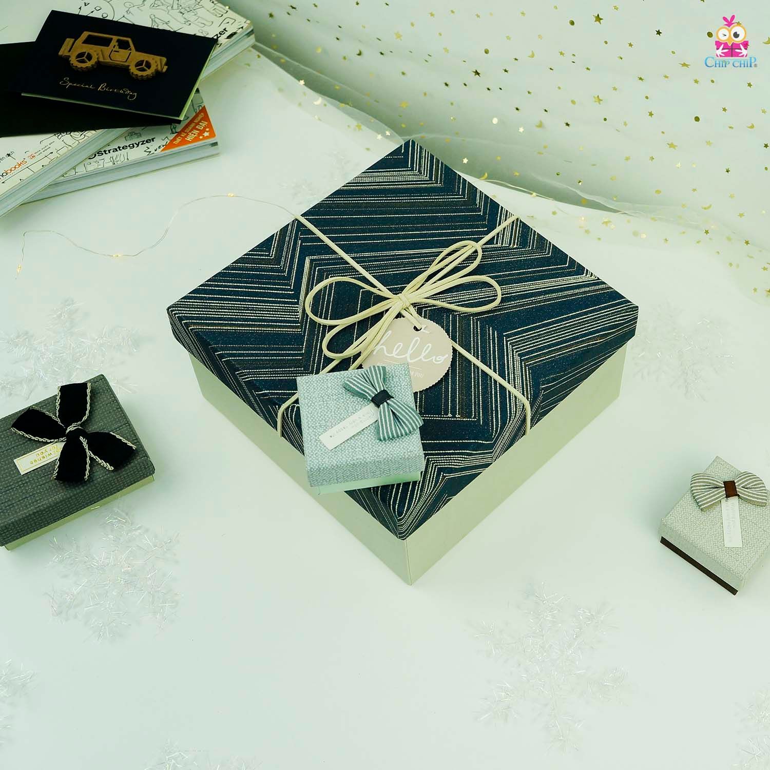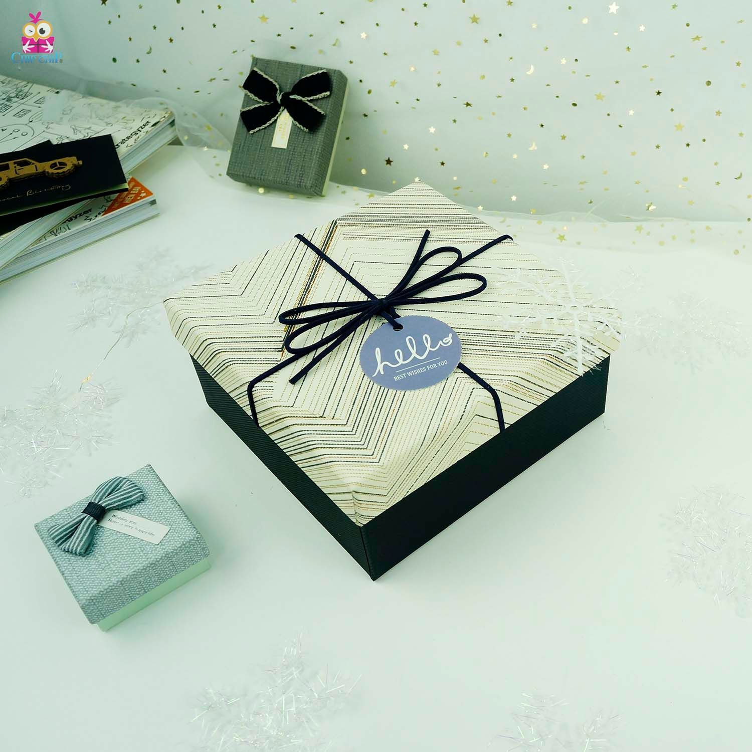 Hộp quà vuông nơ hello